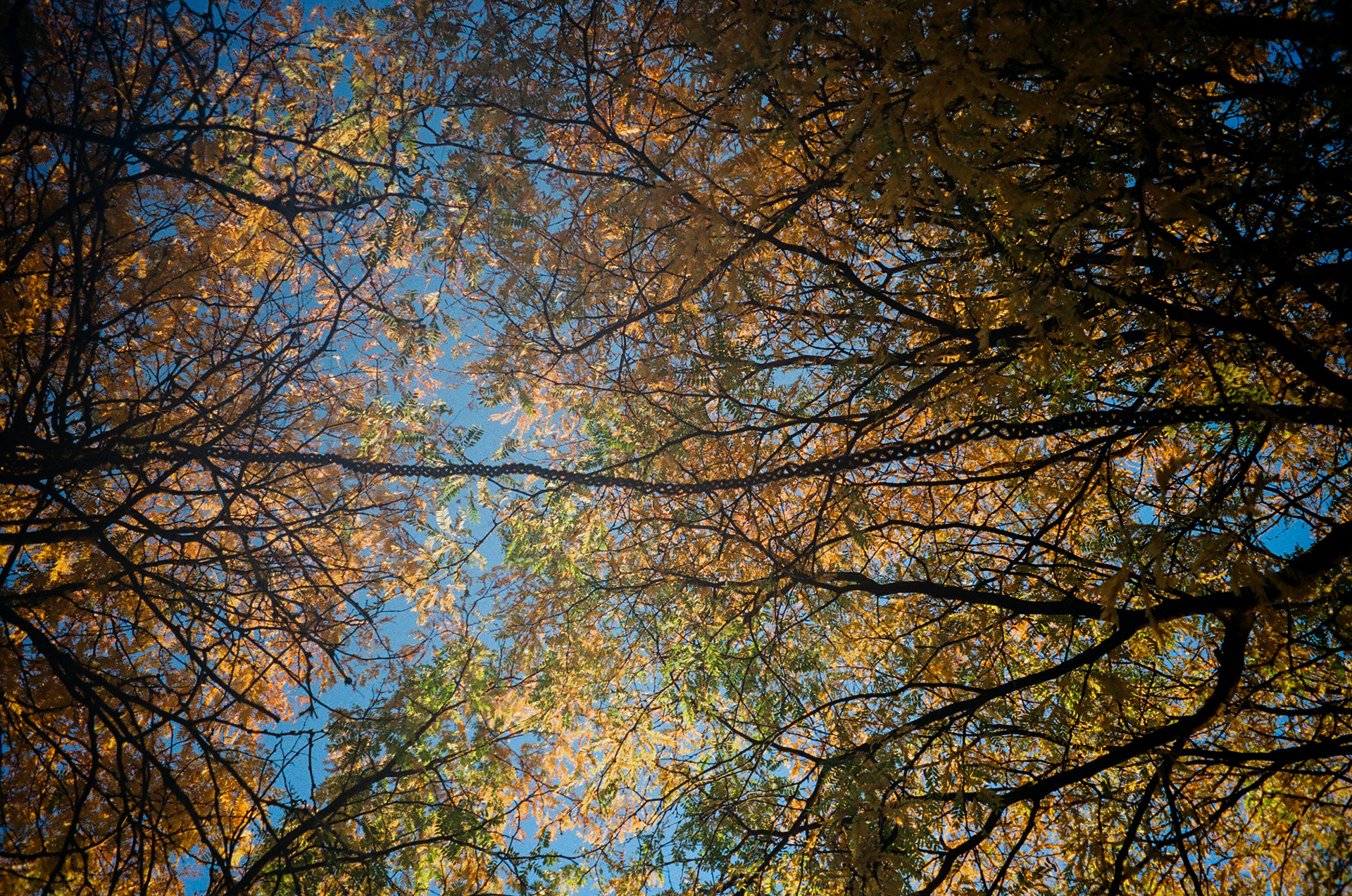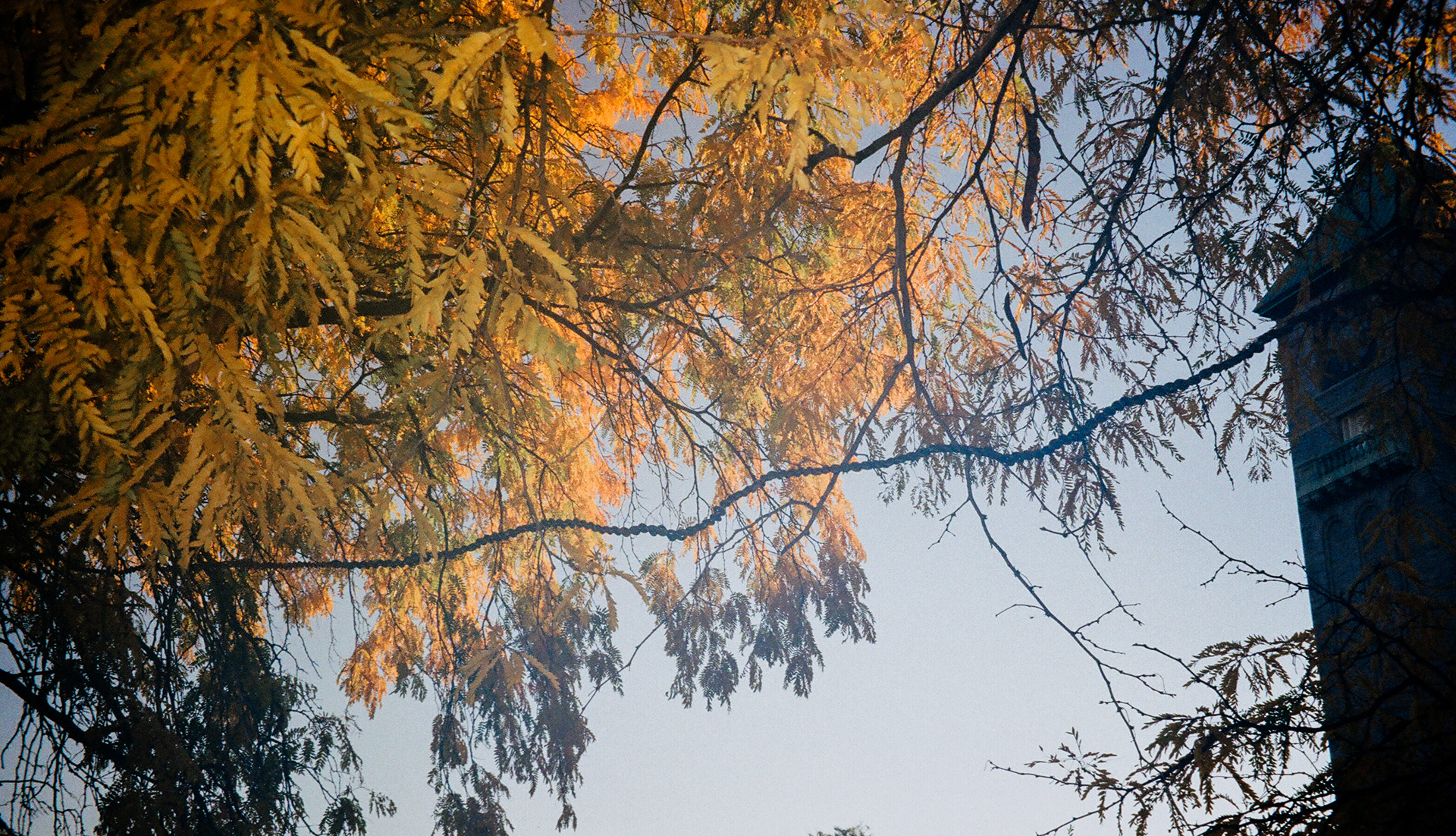 Angelica is a twenty-six foot steel braid connecting the branches of two honey locust trees in their umbrage.
