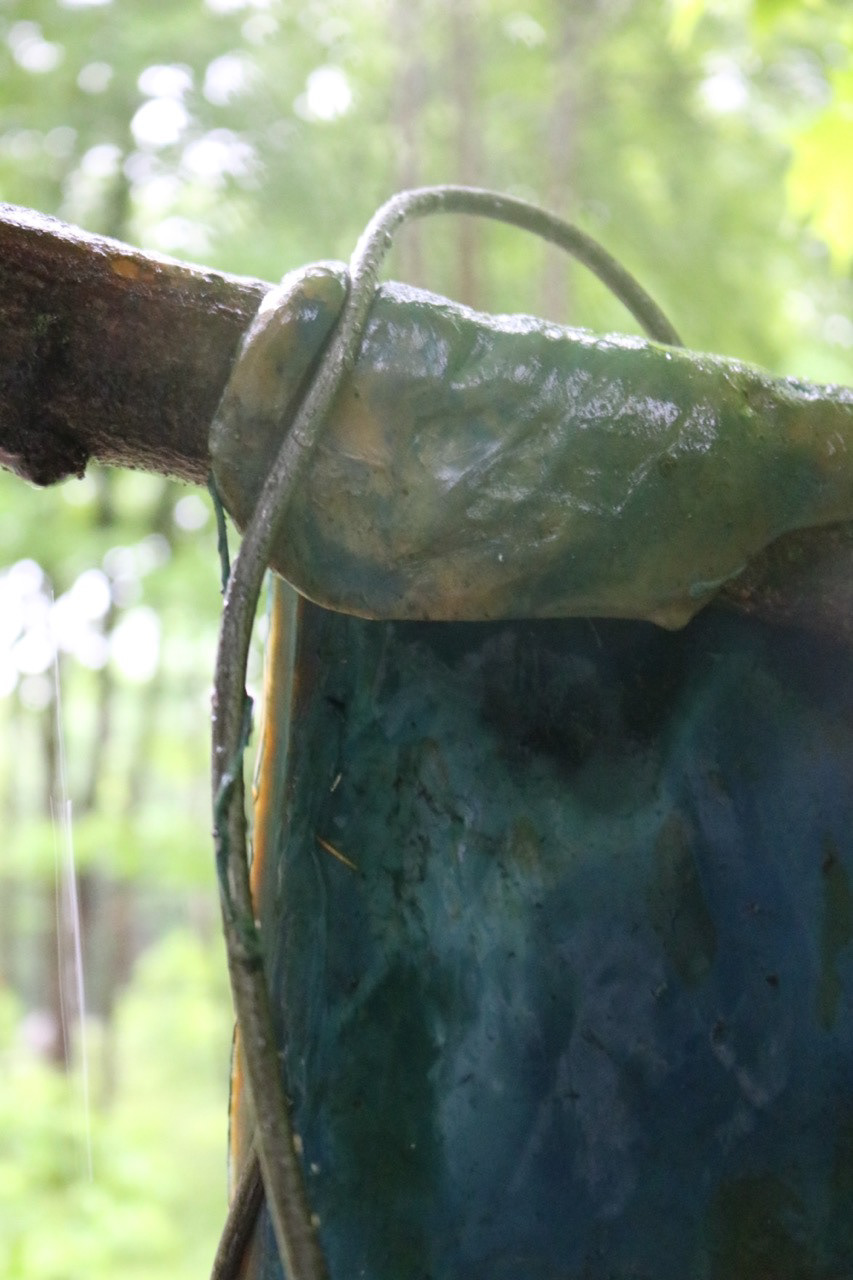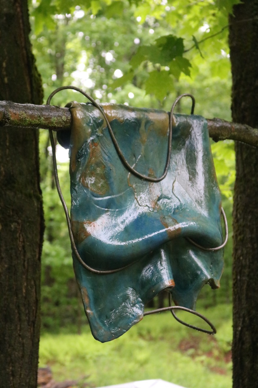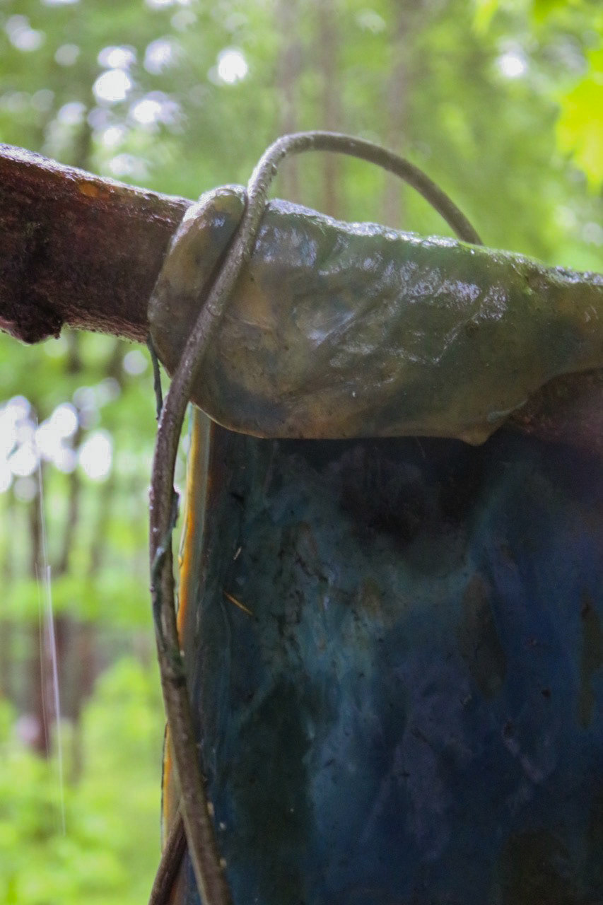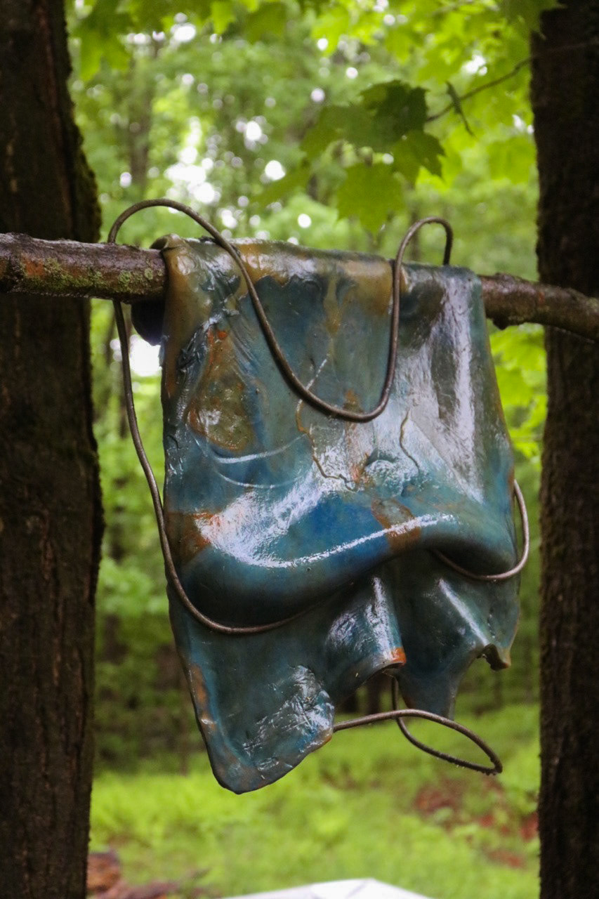 cyanotyped bacterial cellulose, 1/4'' steel round bar